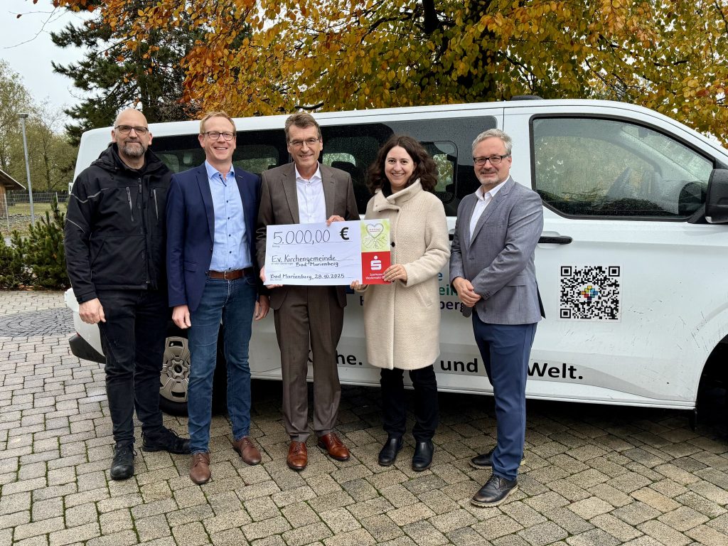 Sparkassenstiftung unterstütztdie evangelische Kirche Bad Marienberg mit 5.000 Euro für unseren neuen Bus Die Jugendstiftung der ehemaligen KSK Westerwald hat 5.000 €