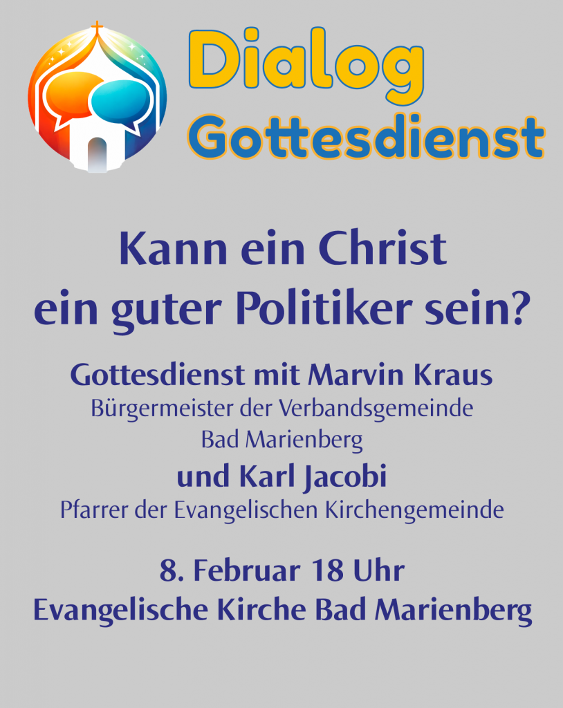 Sonntag, 8. 2. 18 Uhr Evangelische Kirche Bad Marienberg Kann ein Christ ein guter Politiker sein? Gottesdienst mit Marvin Kraus,