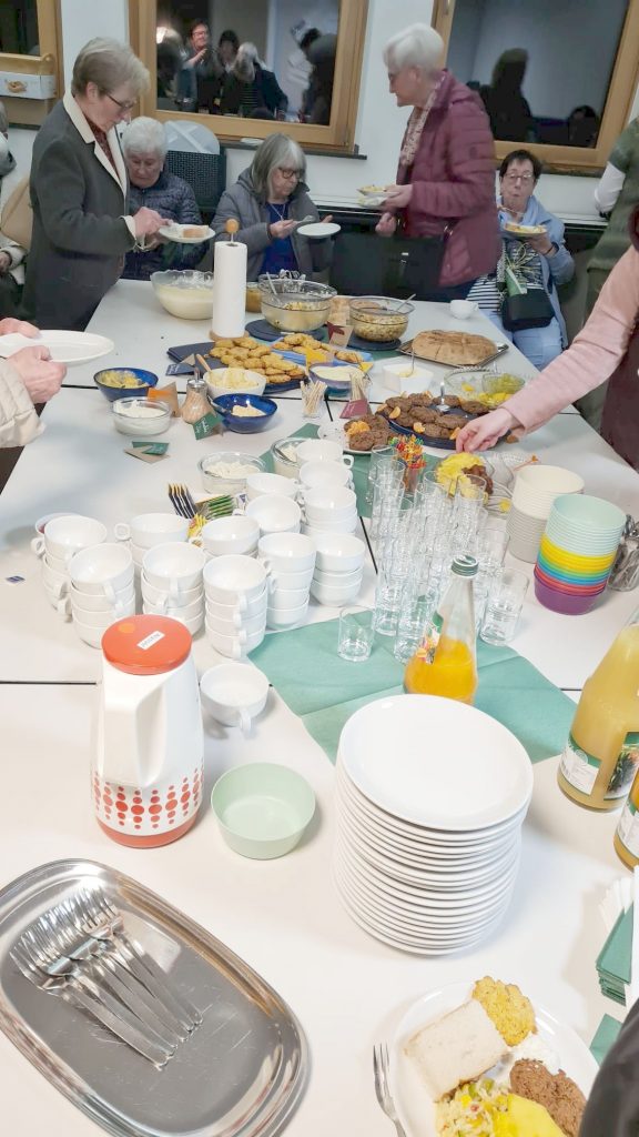 In den letzten 10 Jahren haben wir gerne in diesen Räumlichkeiten gefeiert, weil sie barrierefrei sind. Dieses Jahr wäre besonders zu erwähnen, dass eine 90jährige Dame teilnehmen konnte, weil sie trotz Krücken eigenständig in die Kirche kommen konnte.