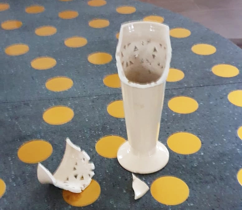 Eine kaputte Vase, verstreute Asche auf Möbeln, zahlreiche umgeräumte Gegenstände und ein umgedrehtes Kreuz zeugen von einem jüngsten Vandalismusvorfall in der Evangelischen Kirche Bad Marienberg.